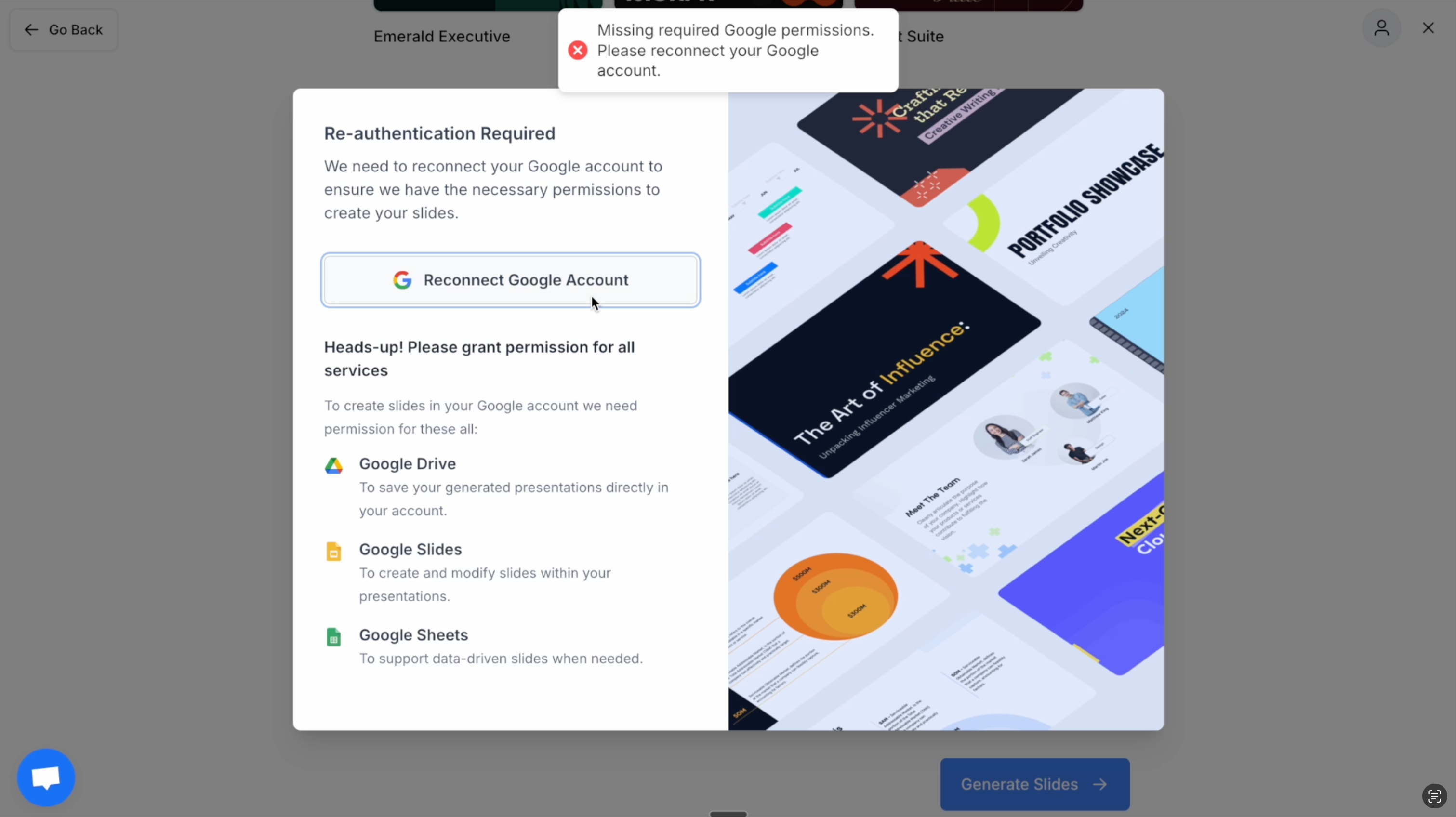 How to fix Missing required Google permissions in SlidesAI