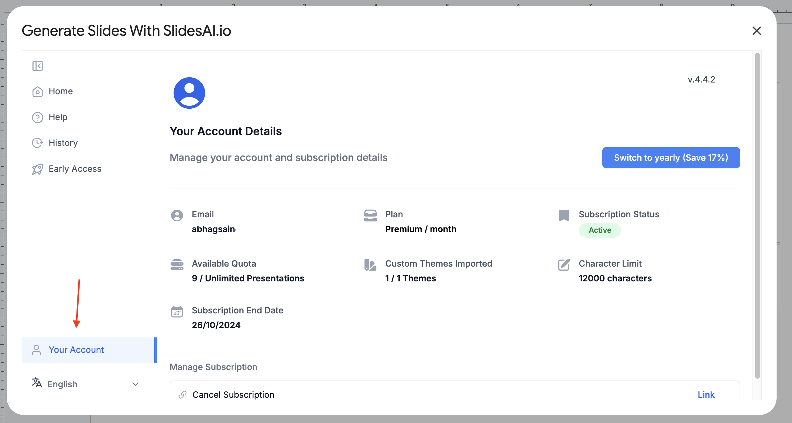 Each SlidesAI subscription is linked to an email, so please ensure you’re logged into the correct Gmail account.